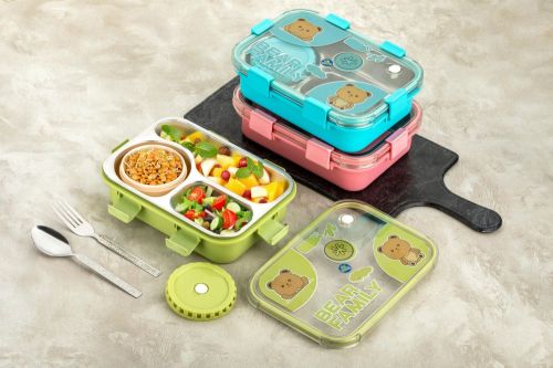 Bear Family 3 Compartment Insulated Lunch Box
